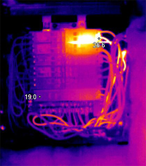 Thermal imaging can find electrical faults where wiring is over-heating. It can also provide an excellent picture of problem areas in overheated equipment and appliances.